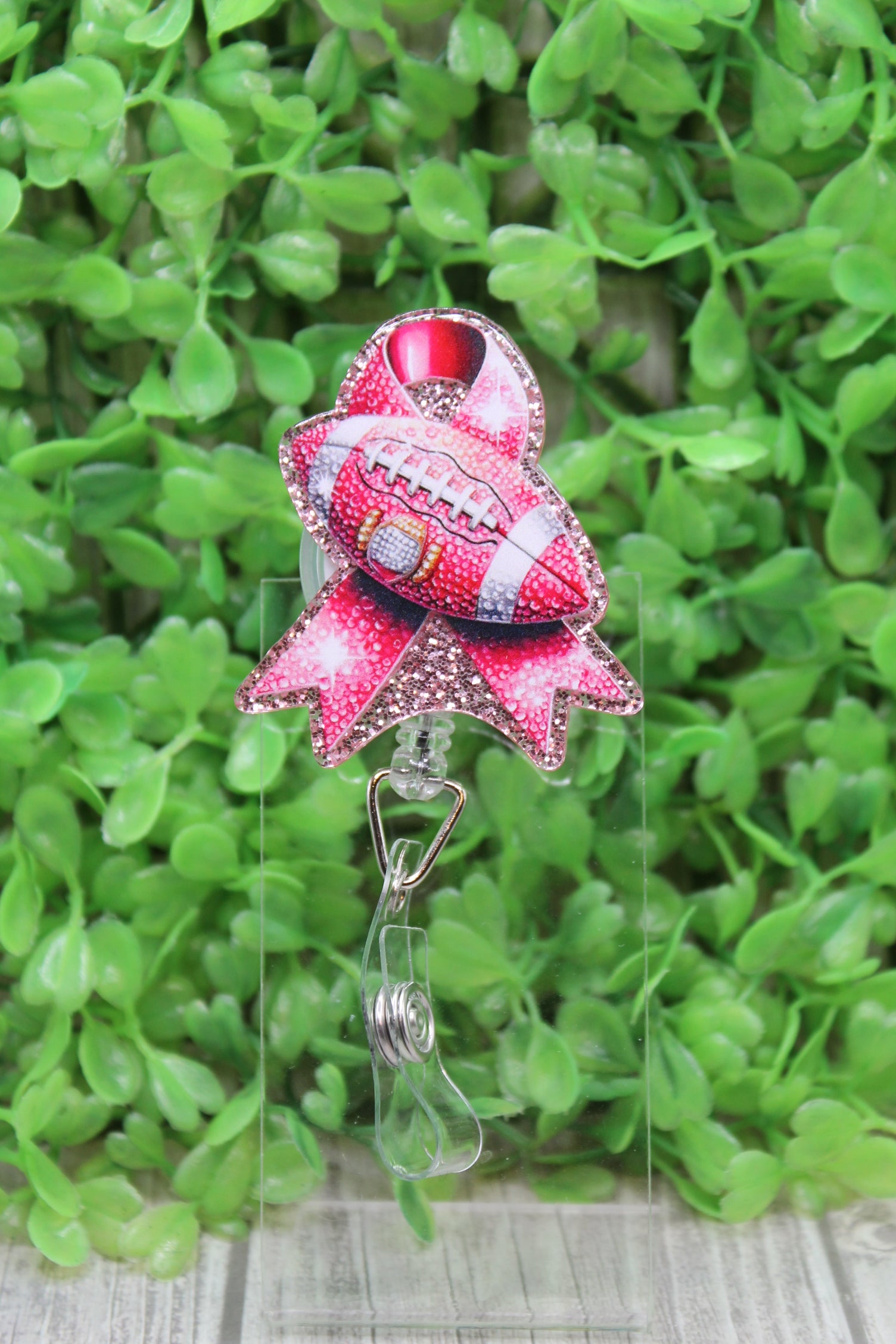 Breast Cancer Ribbon Football Badge/ID Holder Reel