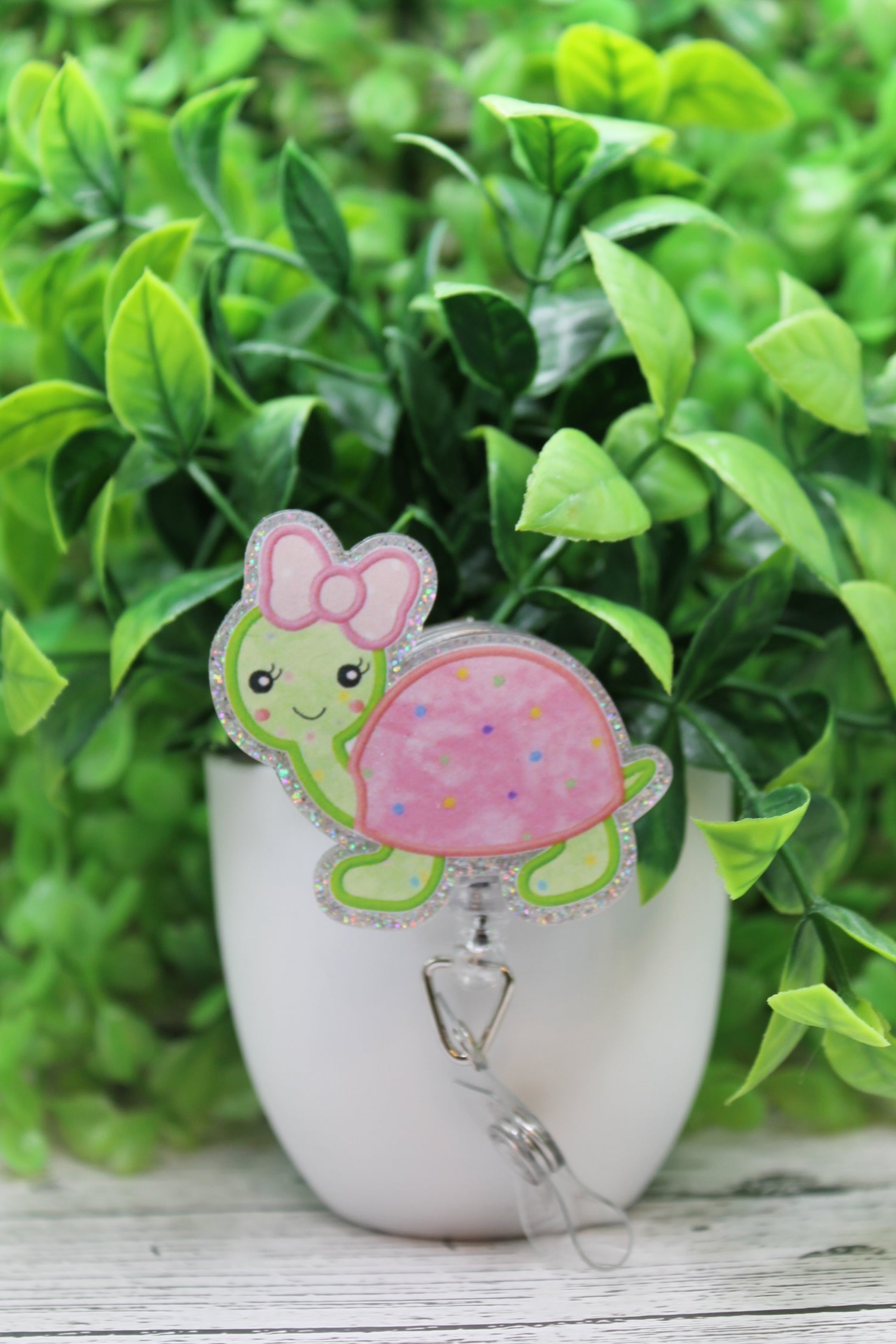 Cute Turtle with Bow Badge Reel