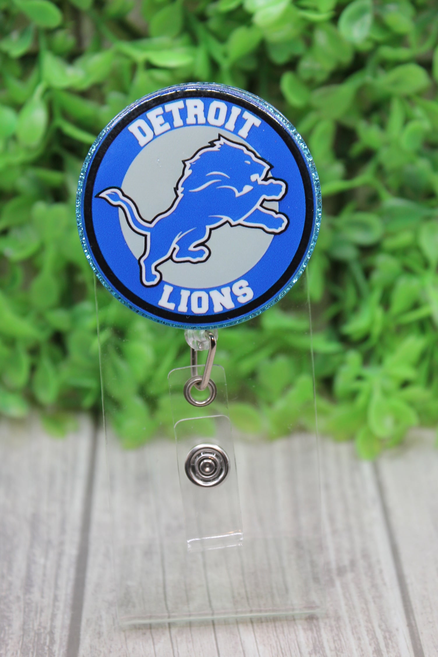 Detroit Lions Blue Glitter Circle Badge/ID Holder Reel