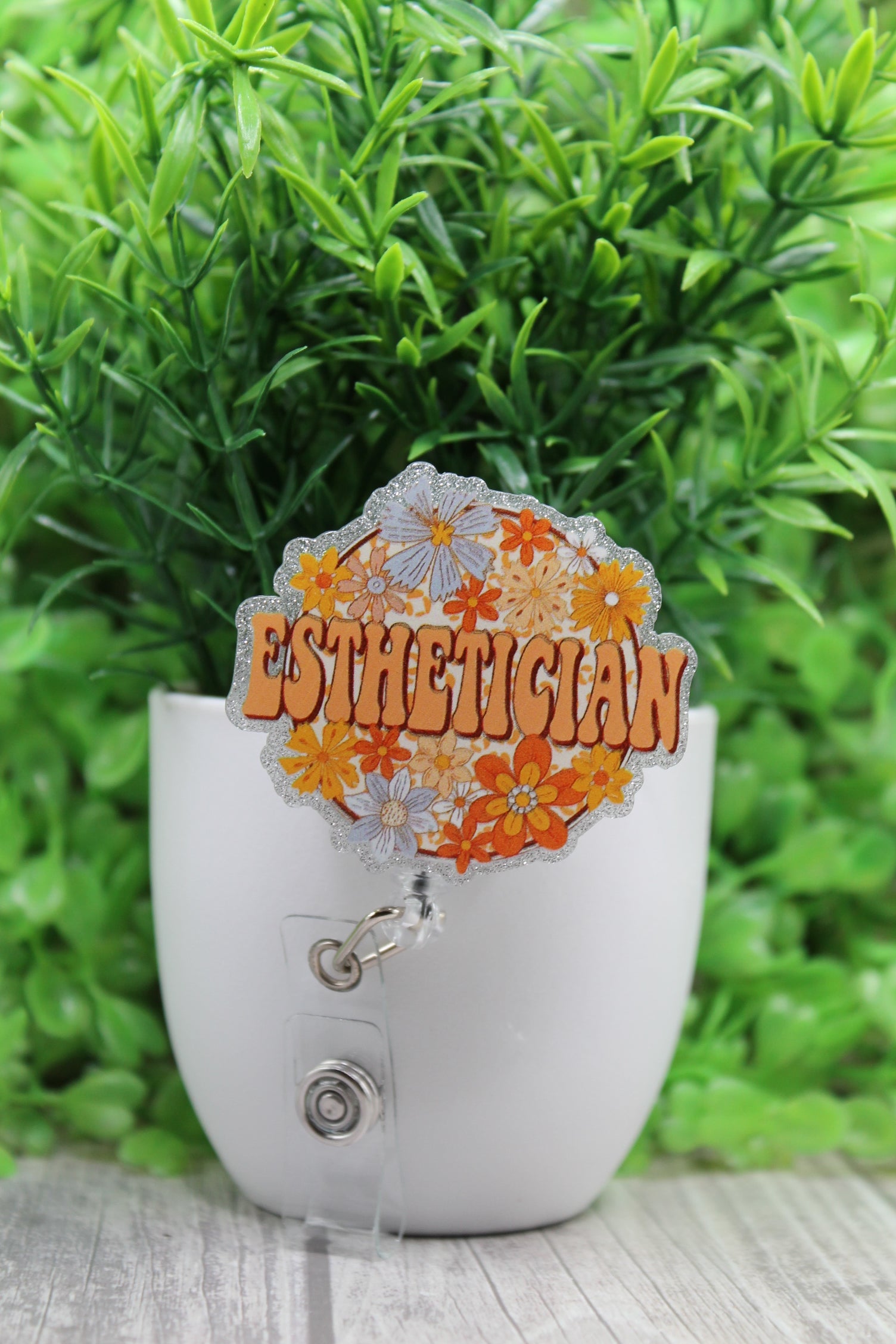 Esthetician Floral • Badge/ID Holder with Alligator Clip
