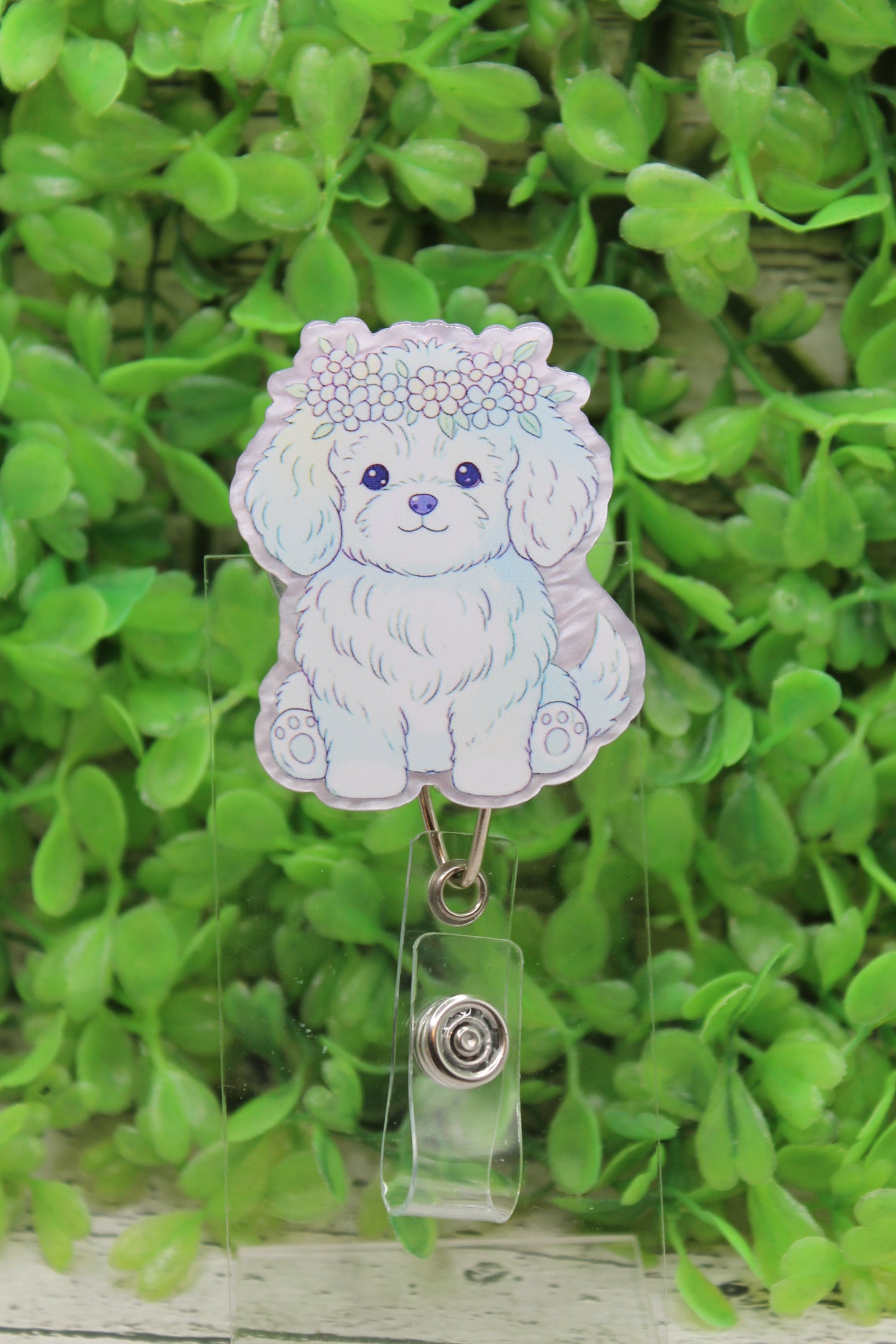 Floral Crown Dog Badge Reel