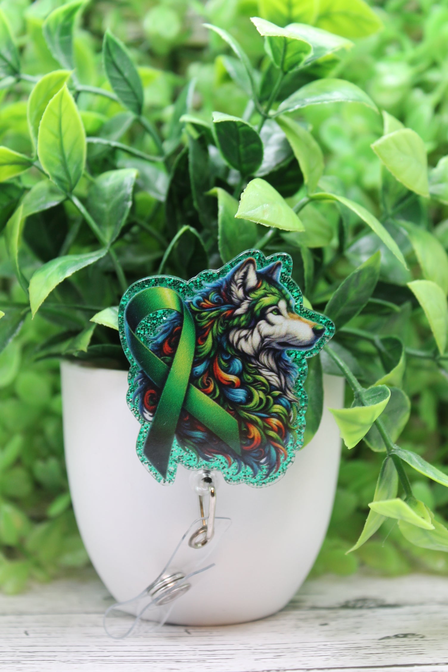 Kidney Cancer Awareness Ribbon and Wolf Badge Reel