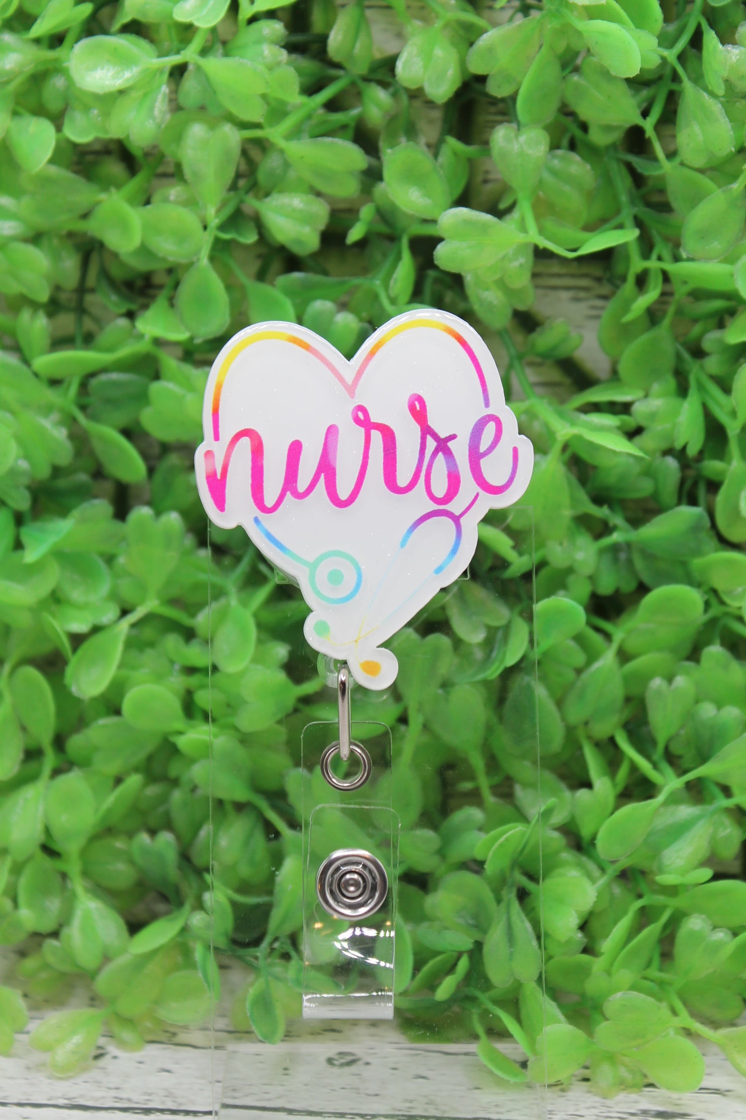 NURSE Watercolor Heart Stethoscope Badge Reel