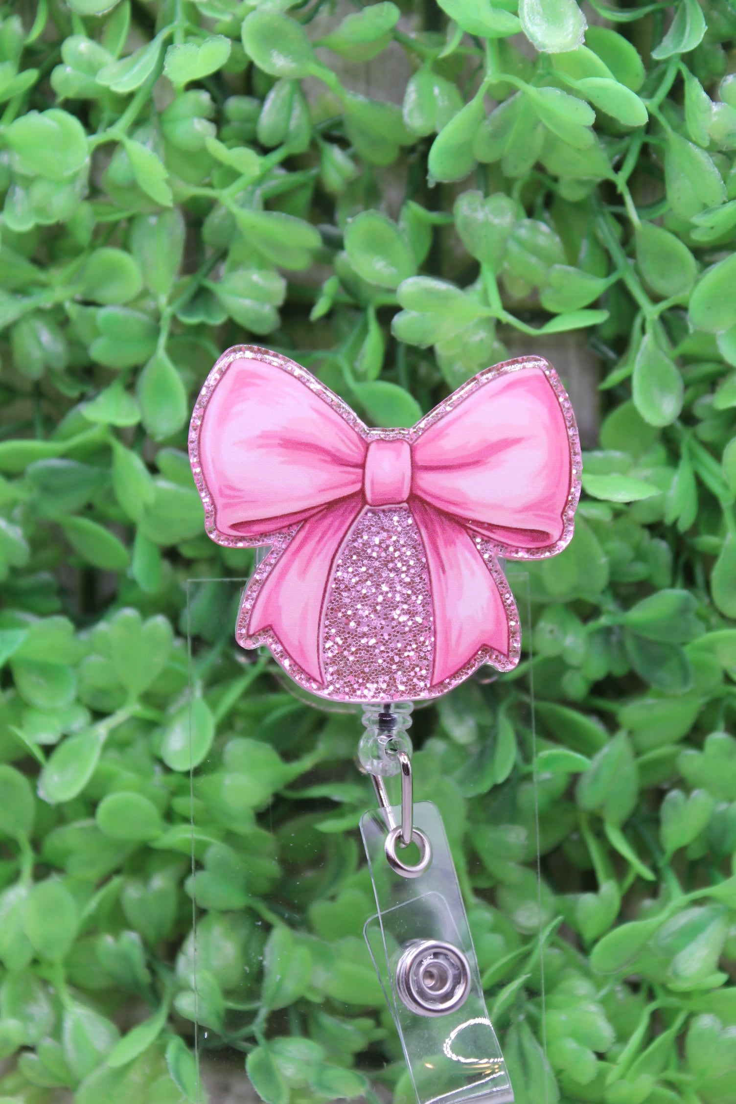 Pink Bow on Pink Glitter Badge/ID Holder Reel