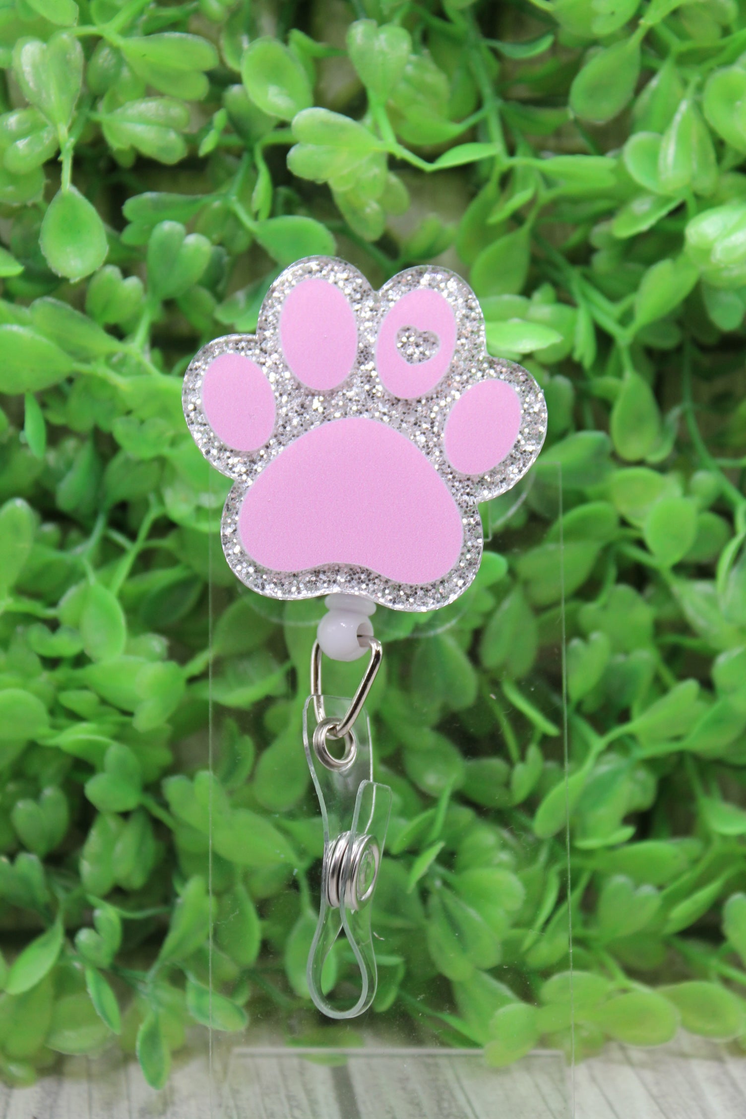 Pink Paw Print with Heart Badge/ID Holder Reel