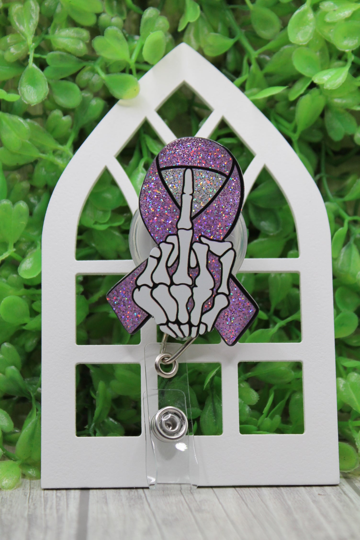 Pink Ribbon F Cancer Badge/ID Holder with Alligator Clip