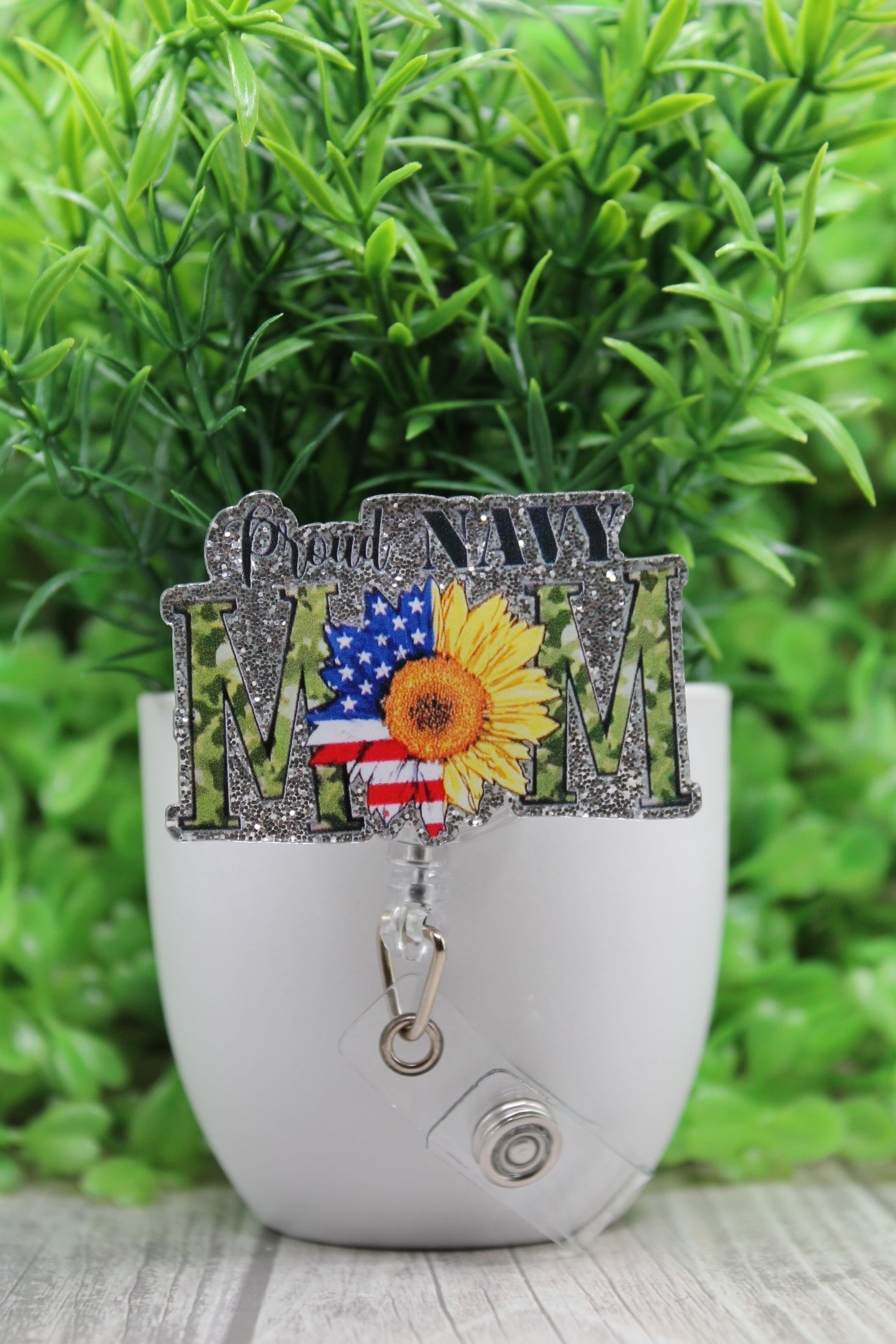 Proud Navy MOM • Badge/ID Holder with Alligator Clip