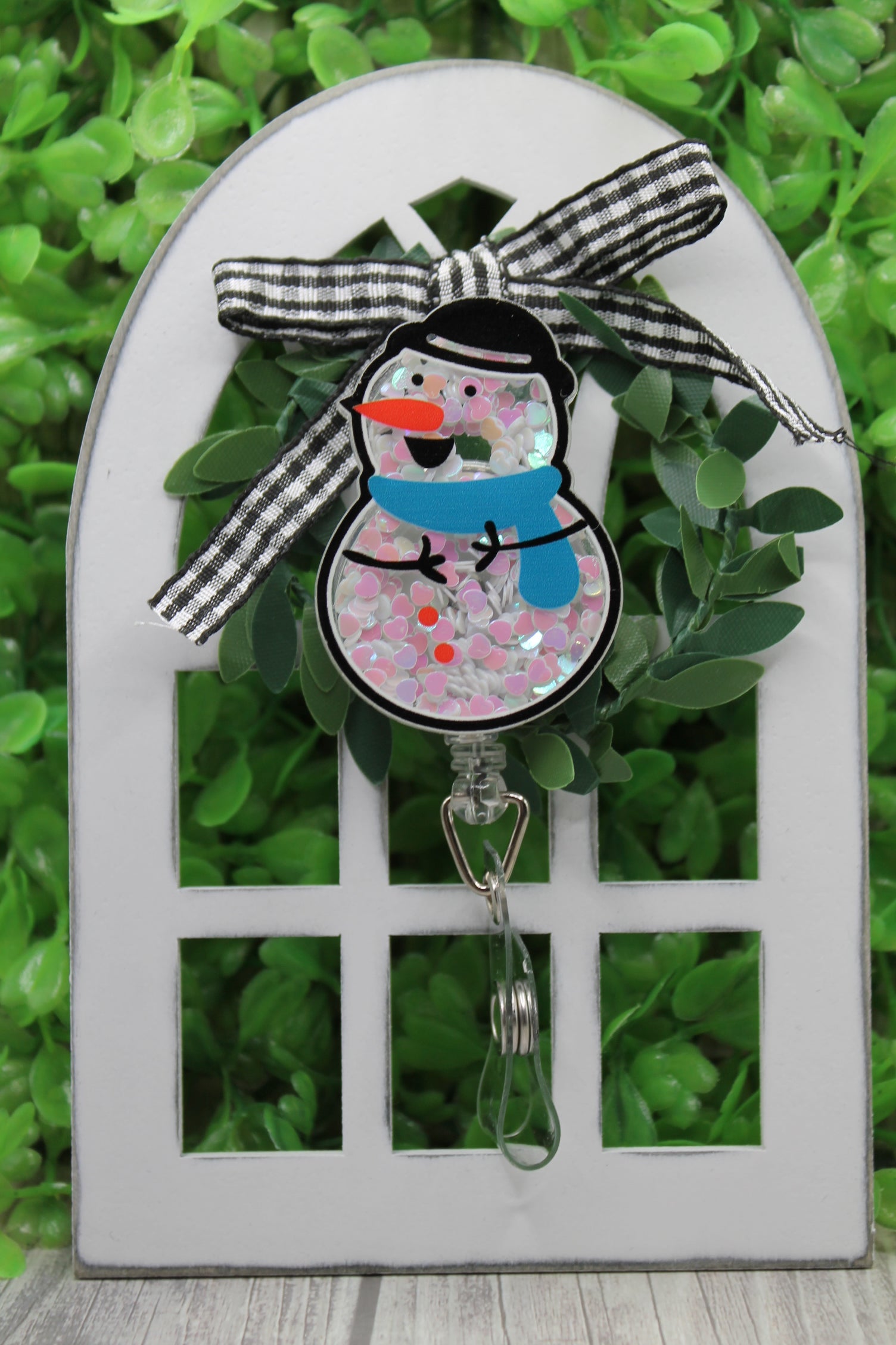Smiling Snowman Shaker Badge/ID Holder Reel