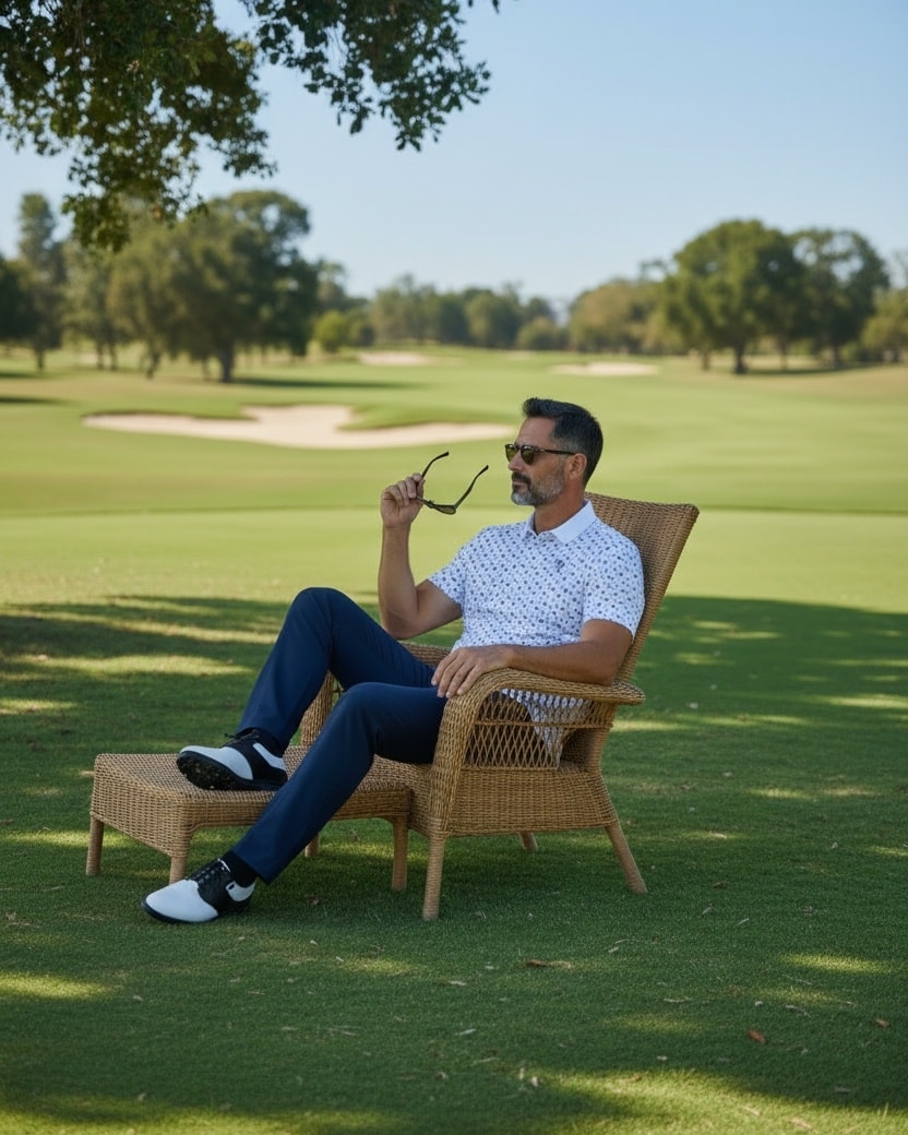 The subtle micro-print design gives the shirt character without being loud, making it easy to pair with jeans, slacks, or golf shorts. Whether you’re working outside, hitting the golf course, or heading into town, this polo keeps you cool and comfortable all day.